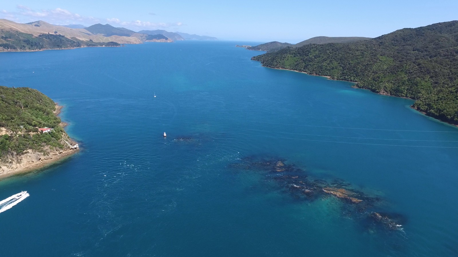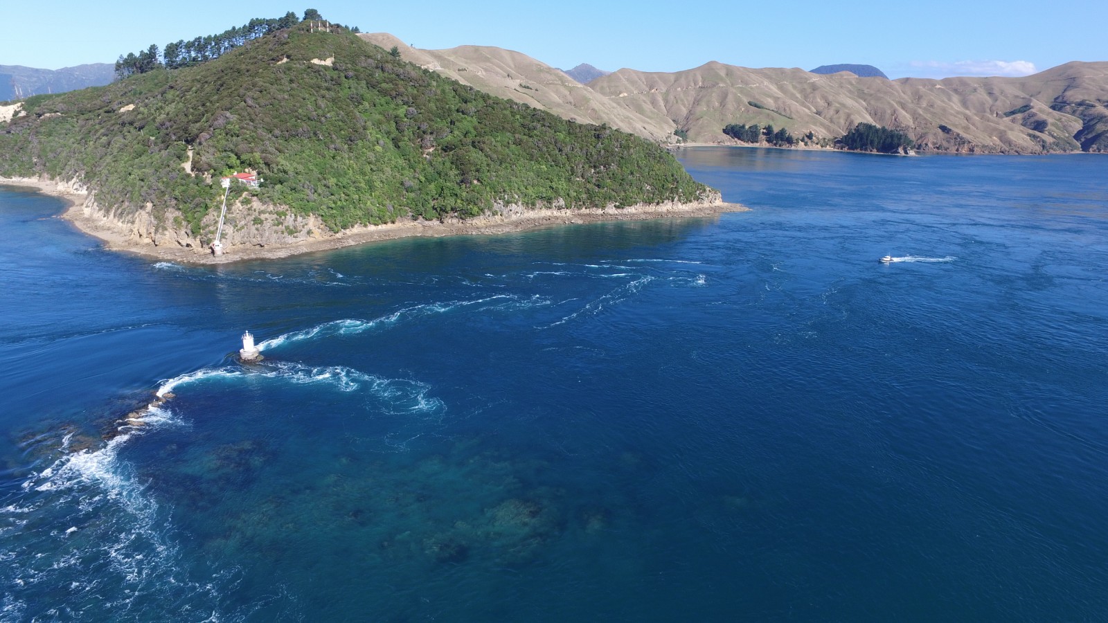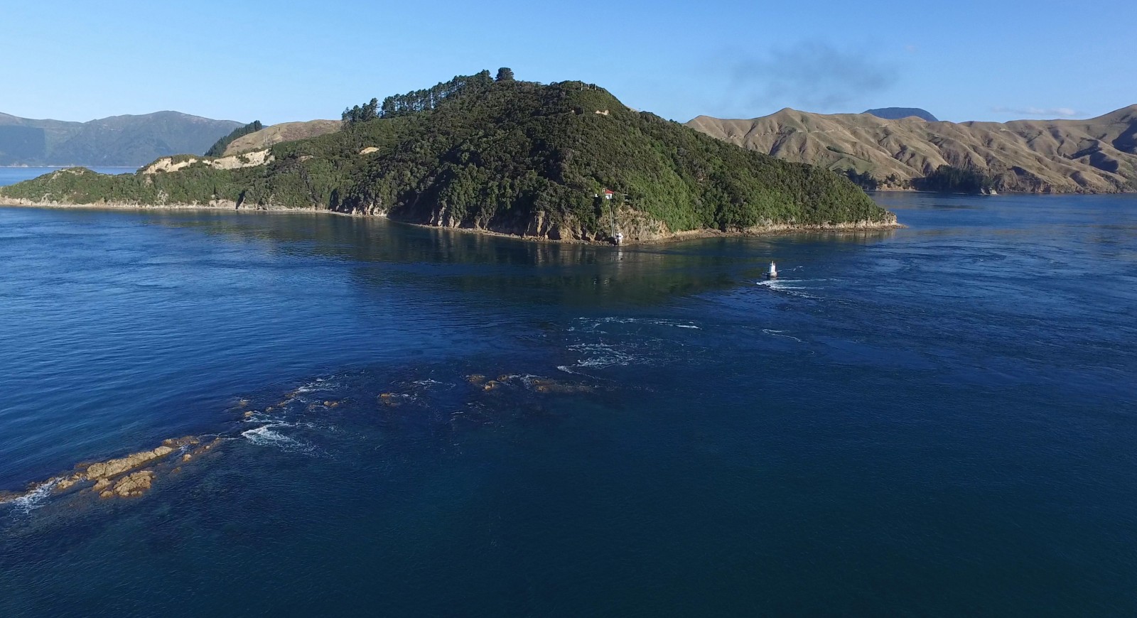 Kupe named the navigable water between the reef and Rangitoto ki te Tonga / D’Urville Island, Te-o-miro-Kawau-a-Toru or the licking, swishing, swallowing currents that drowned Toru’s shag, Te Kawau. Over time, miro became miti and a shortened version of Te Aumiti was used.1