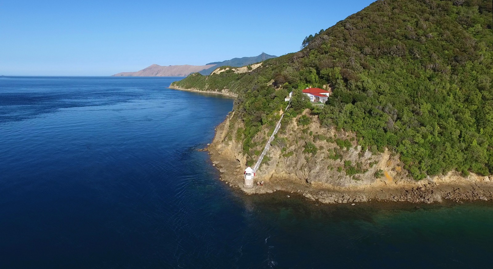 In the early 1880s the Marine Department built a lighthouse on the mainland side of the pass. A house for the lighthouse keeper was built on the cliff above with a connecting stairway to give access to the light. At the same time a ship’s lamp was attached to the beacon on the reef.