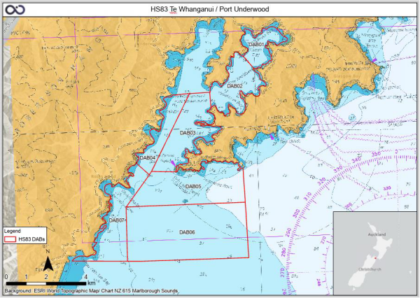 Vessel PEKAPEKA will be performing hydrographic survey at Port Underwood as shown below.