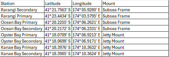 The frames are marked withs lit pillar buoys (Fl Y 5s) and are positioned at the following WGS84 coordinates: