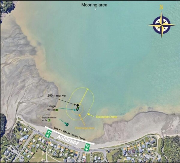 In accordance with the Navigation Bylaws, Okiwi Bay (designed area only) temporarily reserved for fireworks display from: